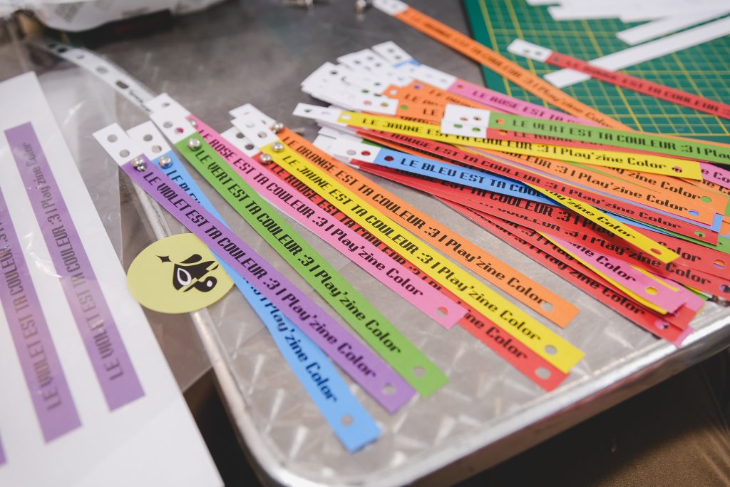 Playzine Color a exploré la couleur comme système éditorial, avec enveloppes pliées, bracelets typographiés et stickers, interrogeant la relation entre les couleurs & la musique