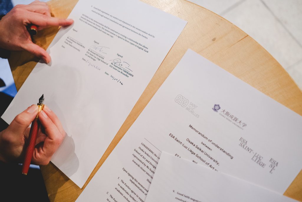 Les Écoles Supérieures des Arts Saint-Luc Liège et Saint-Luc Bruxelles annoncent la conclusion d’un Memorandum of Understanding (MoU) avec la Osaka Seikei University (Osaka, Japon), portant sur les domaines de la bande dessinée, de l’illustration et du graphisme.