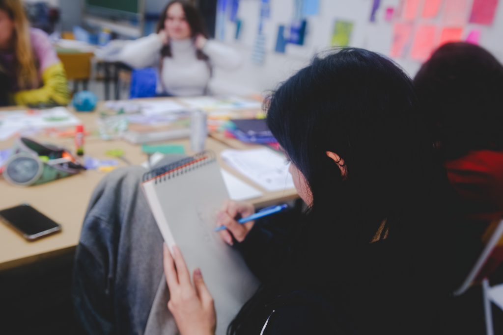 Le workshop s’est conclu par une rencontre privilégiée à la librairie La Grande Ourse, réunissant Marie Mirgaine, l’illustratrice Lisbeth Renardy et leur éditrice Valérie Cussaguet (Éditions Les Fourmis Rouges). Les étudiant·e·s ont pu découvrir les coulisses de la création d’un album, des premières esquisses à la publication, et échanger sur la relation essentielle entre autrice et éditrice.